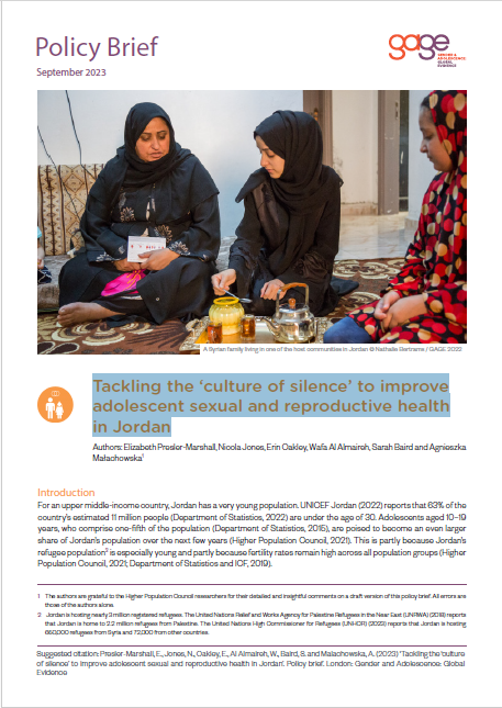 Tackling the ‘culture of silence’ to improve adolescent sexual and reproductive health in Jordan